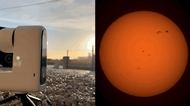Observe the sky at night AND by day! The Seestar has a solar filter to view the Sun and sunspots. Activate Solar Mode on the app to see solar activity.